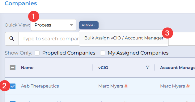 You can bulk assign a vCIO to multiple companies from the Companies List screen. Or, you can also individually set it from the Company Details screen.